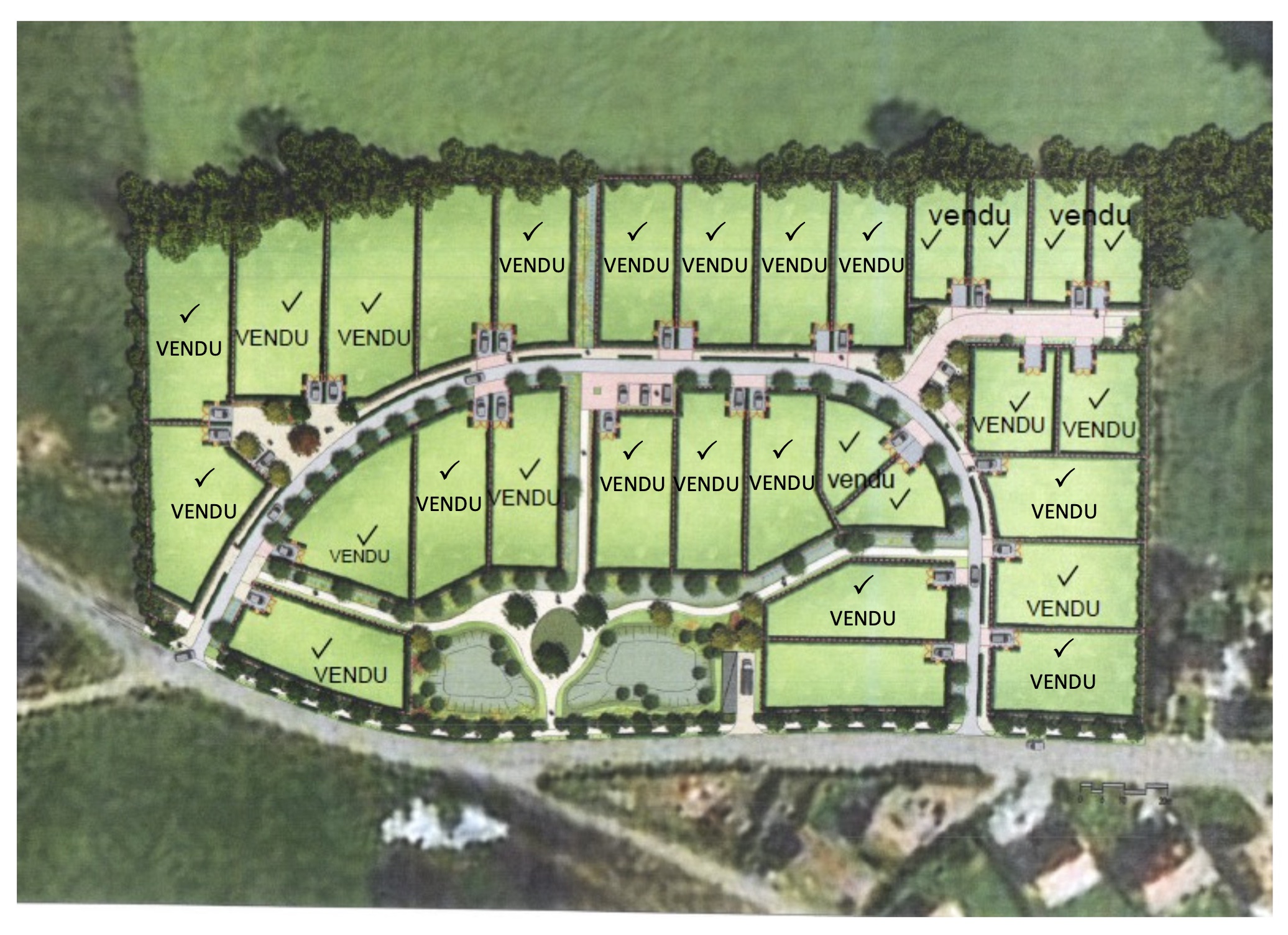 Les terrains sont aménagés : assainissement, gestion pluviale, clôtures, raccordement EDF, Telecom